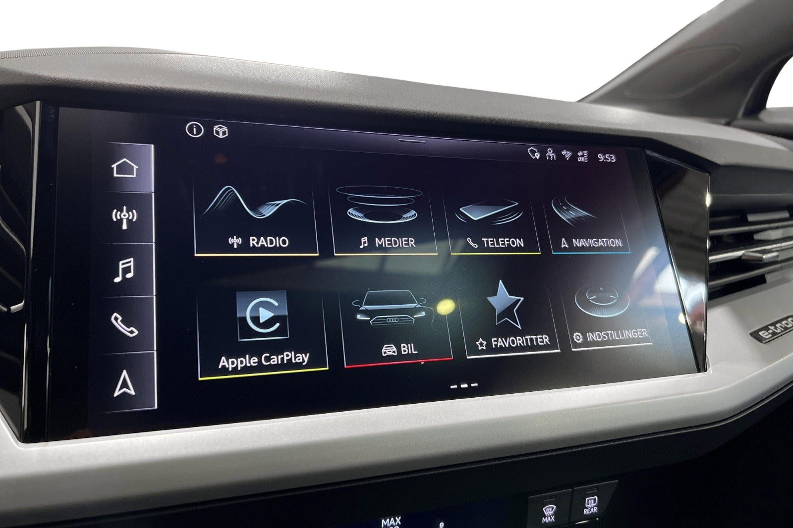 * Panorama glastag * Komfortnøgle * Forreste dørruder med akustisk glas * MMI Navigation plus & Audi virtual cockpit * Audi sound system * Varmepumpe * Audi Matrix LED forlygter * LED baglygter * Undvigeassistent og drejeassistent * Komfortparkeringsklimafunktion * Klimaanlæg automatisk * Vognbaneafvigelsesadvarsel * Sædevarme foran * Audi pre sense front * Audi sound system * Børnesikring, elektrisk betjent * Børnesædefastgørelse i-Size i passagersiden og i-Size og * Top Tether på de yderste bagsædepladser * Dekorindlæg i sort eksklusiv lak * Digital radiomodtagelse * Multifunktionssportslæderrat flad top og bund og skiftekontakter * Forsæder med højdeindstilling * Højglanspakke blanke rudelister og Tagræling * Komfortmidterarmlæn foran * Mode-3-ladekabel * Splitbagsæde 40:60